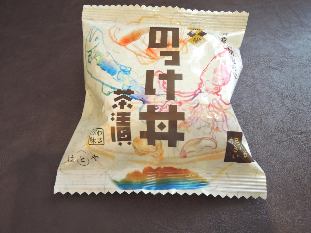 青森のはとや製菓といえば、スイーツかなと思うところですが、最近では海の幸を使った物も多く出ています。今回はのっけ丼茶漬を購入しました。いかの塩辛、ホタテ、サケ、椎茸をフリーズドライされたワサビ味のお茶漬は、他にない高級感のあるお茶漬です。