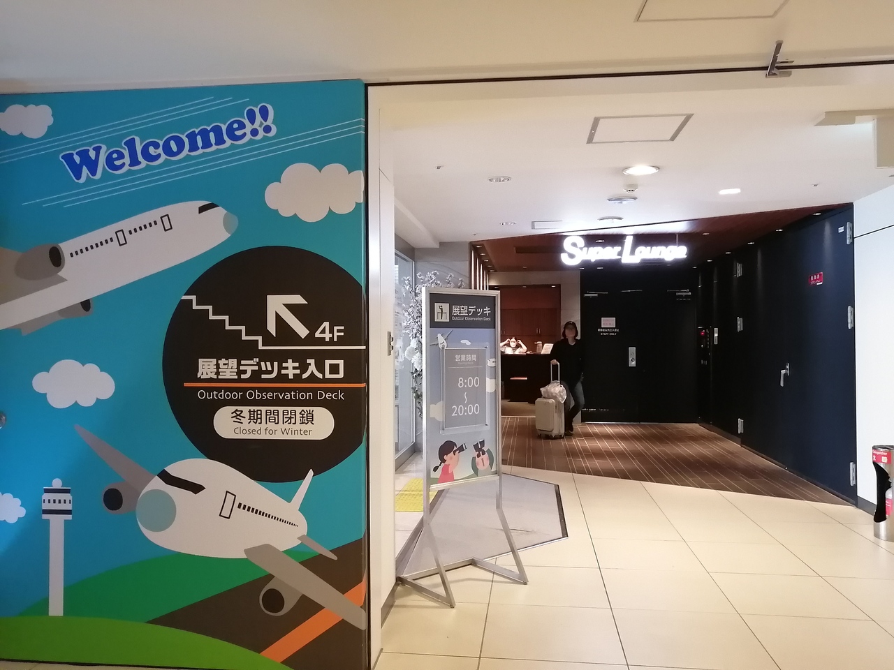 新千歳空港で三時間くらいフライトまで時間があったので、ゆっくり空港内を探検してみました。展望デッキは3階のカードラウンジ(スーパーラウンジ)の手前左手の出入口から、階段を登って行くことになります。冬場や雨の日以外は行ってみられることをおすすめします。