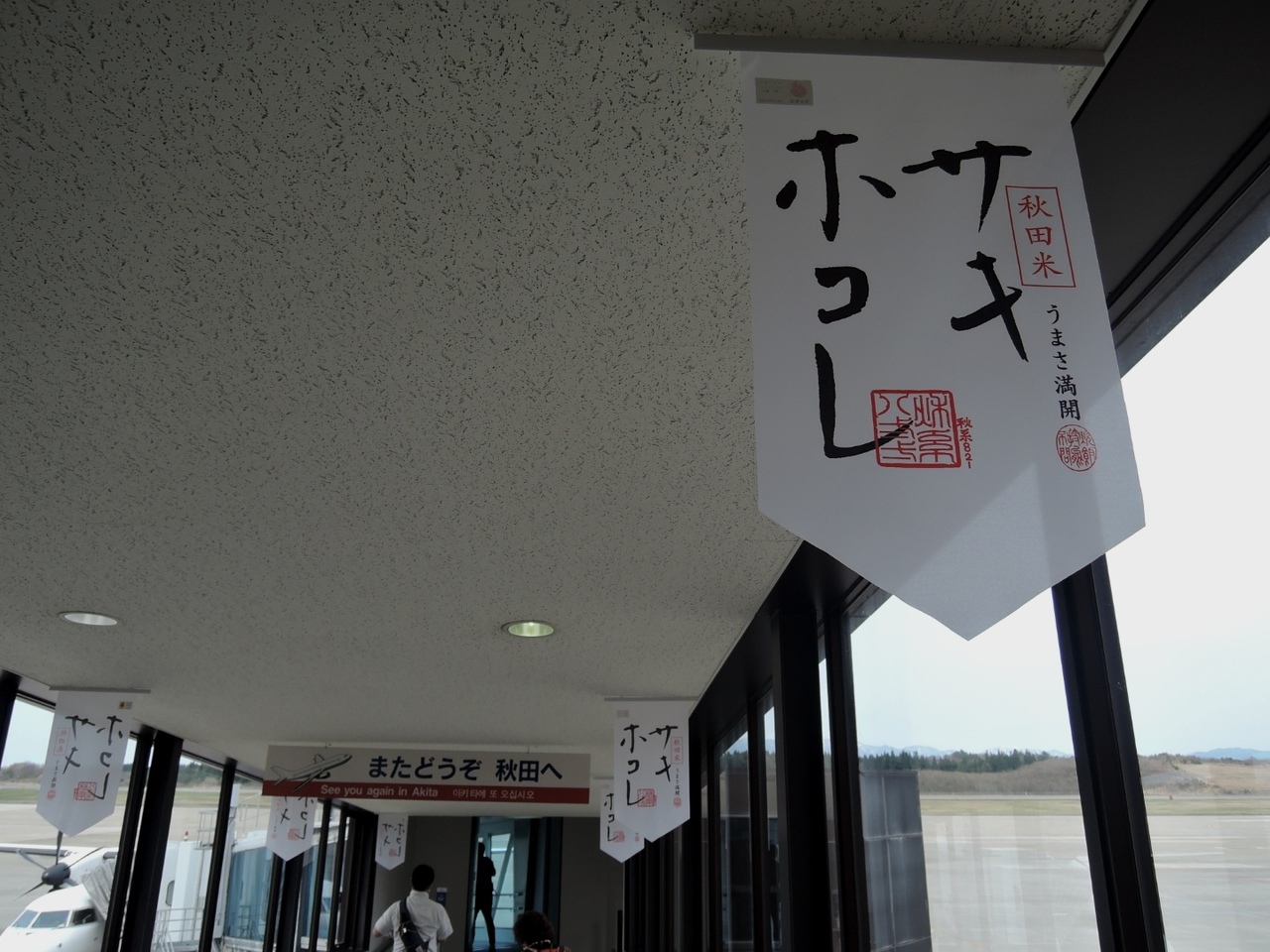 秋田空港のエスカレーターで二階に上がって振り返るとすぐあります。小さめですが、必要最低限のお土産があるので、ANAカードをお持ちの方は少し安く買えます。店員さんはいつも親切で愛想がよくて、好感が持てます。