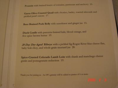 「The Modern」のバー・コーナーのメニューの一部。以下を注文。...