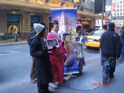 「チケッツ」の前で中国の舞踊団員が熱心にPR中。 寒そうでした(>_...