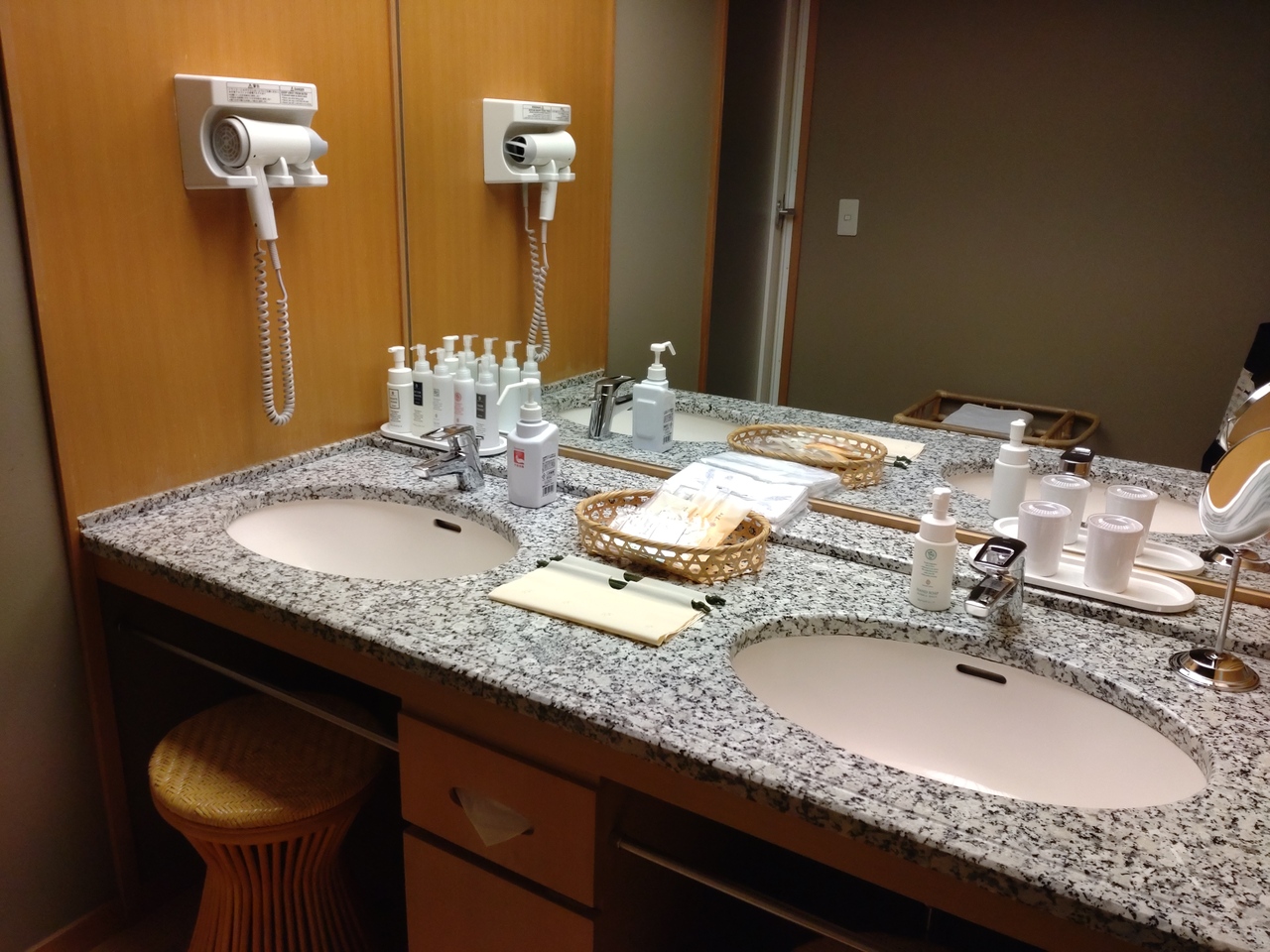バスルーム洗面所は広くてキラキラしてます。お部屋の調度品も品良く可愛いです。