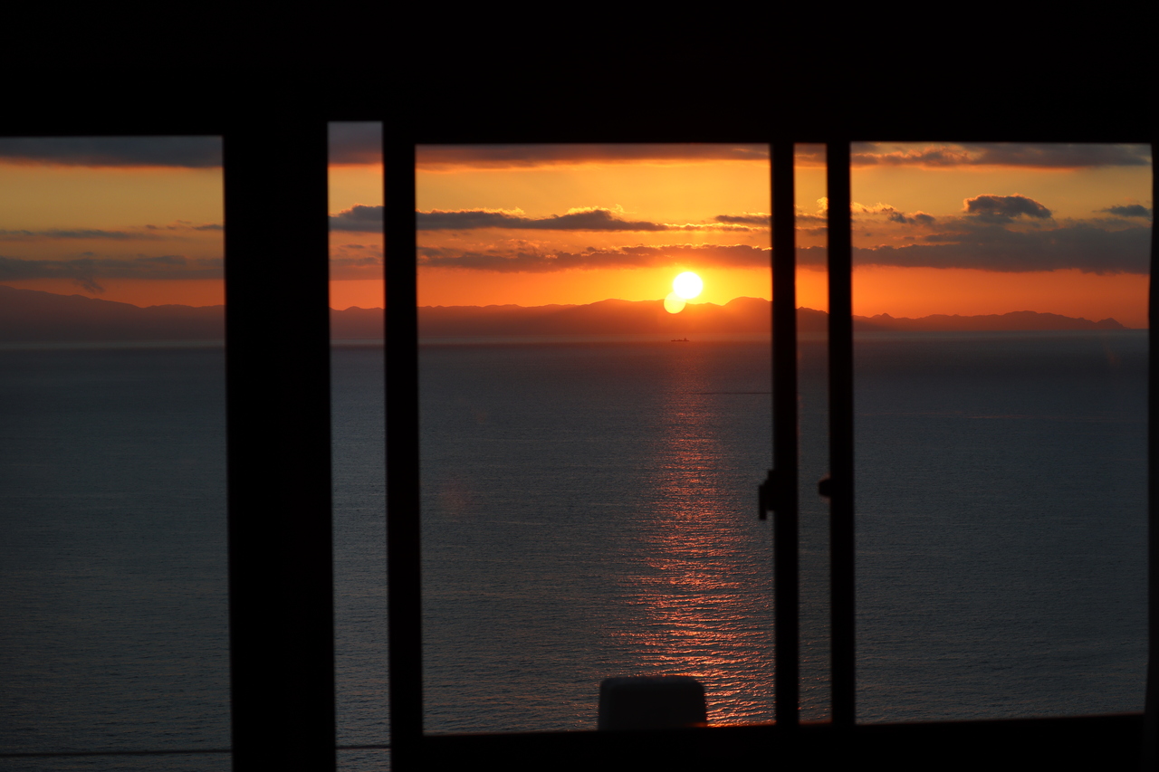 残念ながら目の前に富士山どーんと言うわけではないですが、オーシャンビューで目の前に朝日が上がります。富士山もやや斜めになりますがしっかり見えました。