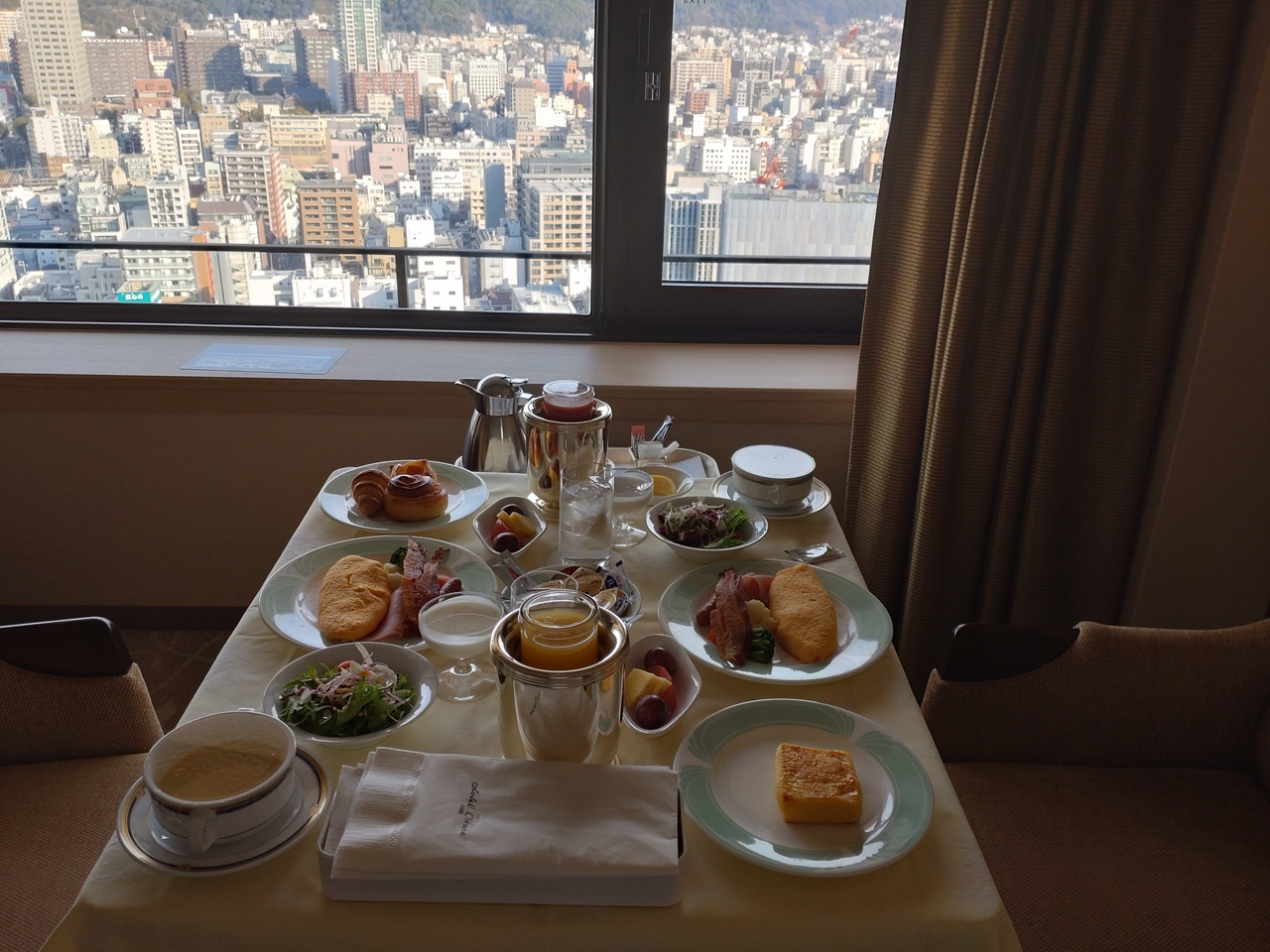 日本一(今のところ)の高さを誇るあべのハルカスにある『大阪マリオット都ホテル』。お部屋はクラブデラックスツイン、55階。高いです、慣れるまでちょっと怖かった。でも、眺望はさすがでした。ずっと眺めてても飽きひんかった。ただ、南側の景色なのでちょっと地味かも💧