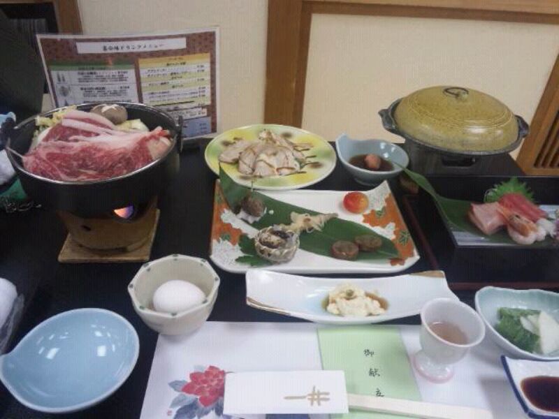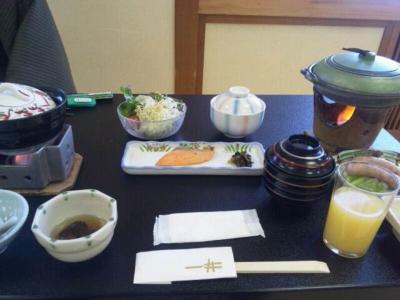 お食事は広間で和食でした。今回はお食事にはあまり重きを置かない宿選びでしたので特に不満はありませんでしたが、熟年夫婦には量が多かったです。もう少し品数等を減らして食材のランクアップをしてくれたほうが嬉しいのになと感じました。