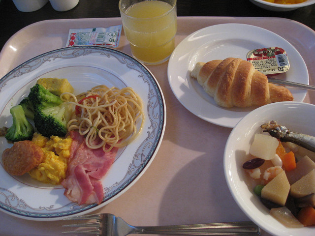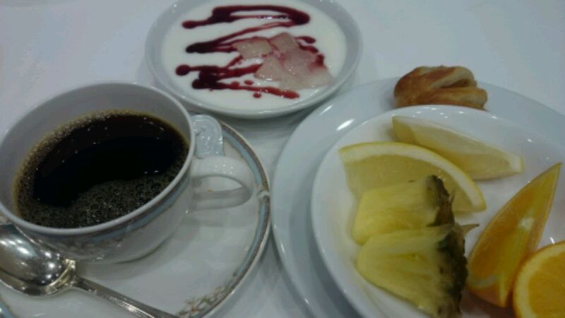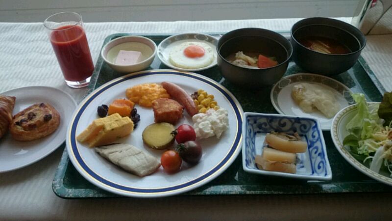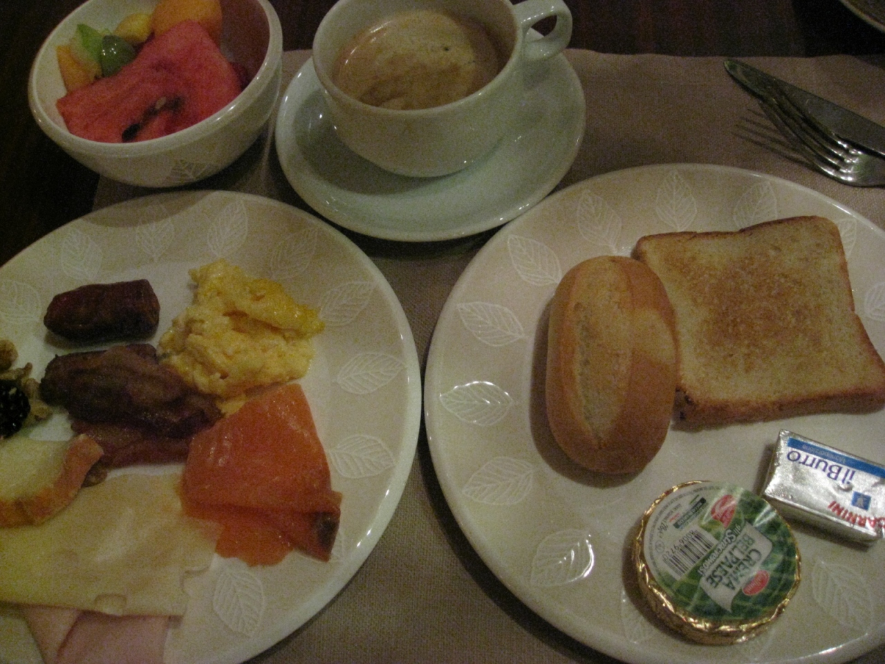 朝食はバイキングでよくある感じでしたが、食後にコーヒーを紙のカップに入れて、自室で飲めるサービスはgoodでした。