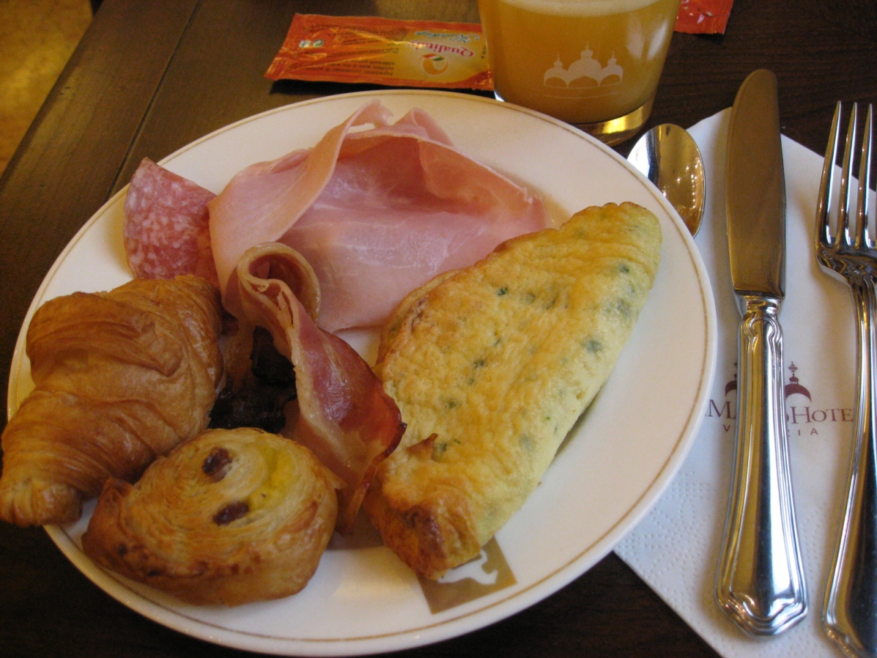 食堂の窓の向こうはゴンドラが泊まった運河で、景色を眺めながらの朝食はベネチア気分を盛り上げてくれました。- 旅行時期