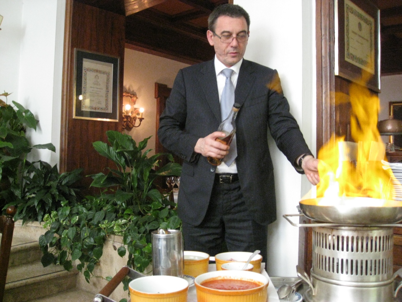 パスタ料理の調理などテーブルのそばで見せてくれるパーフォーマンスがありました。