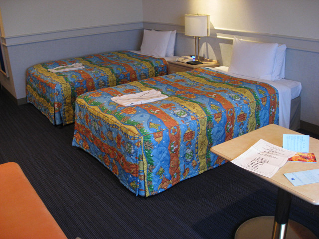 新しいホテルだけに各ベッドの枕元にコンセントがあって携帯やカメラの充電の為に夫とコンセントを奪いあうこともありませんでした。