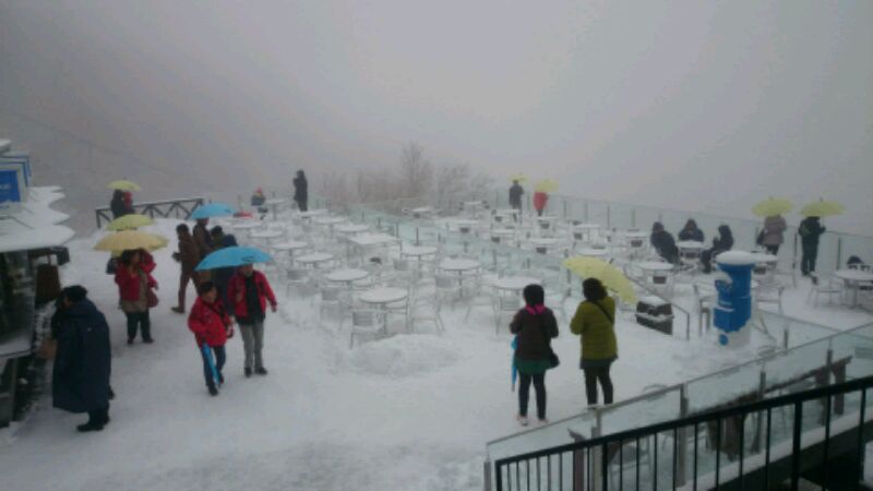 雲海テラスにも行きましたが残念ながら雲海は拝めず、気温0度で積雪、超寒かったわぁ。ただ、テラスでは防寒の上着を貸して貰えたのは嬉しかったな、良いサービスだと思いました。