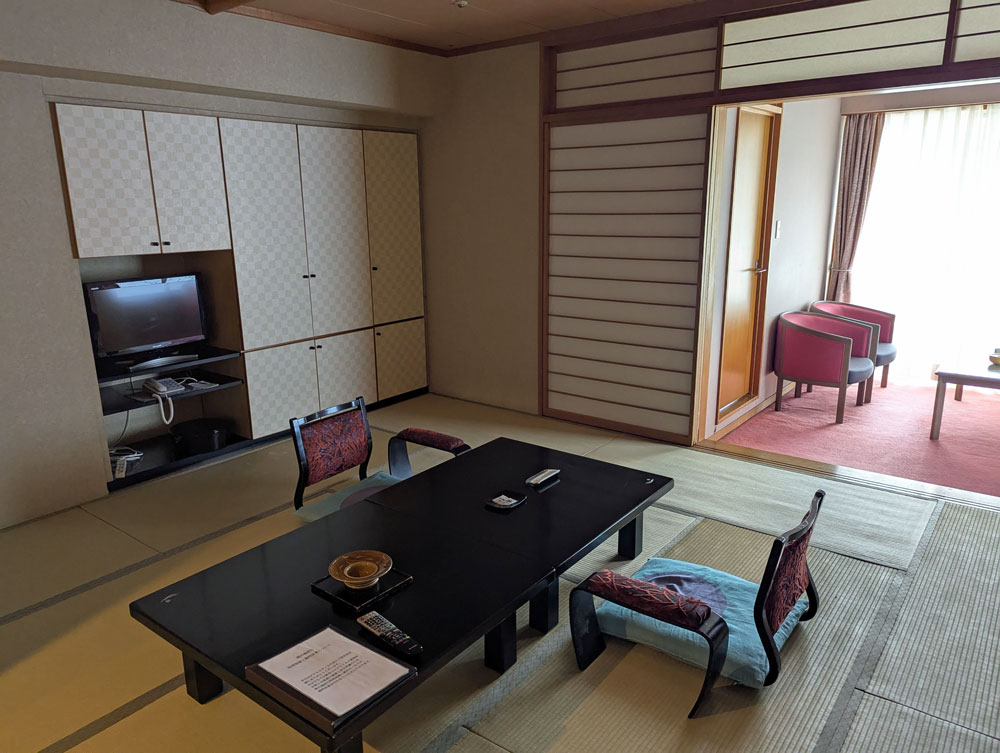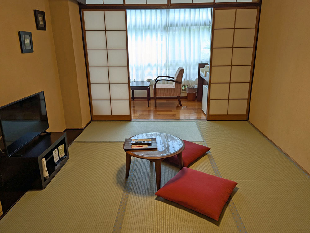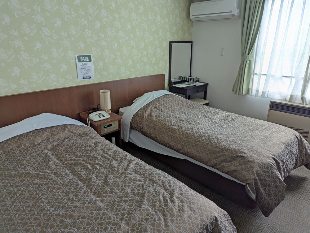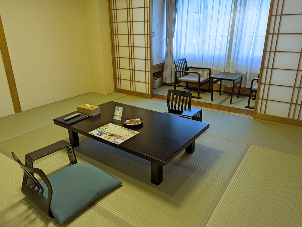 部屋は和室。ふるさはありますが、清潔に保たれていて、気持ちよく過ごすことができました。ただ、今どきにしては珍しく禁煙・喫煙と部屋があるので、予約時に要チェックです