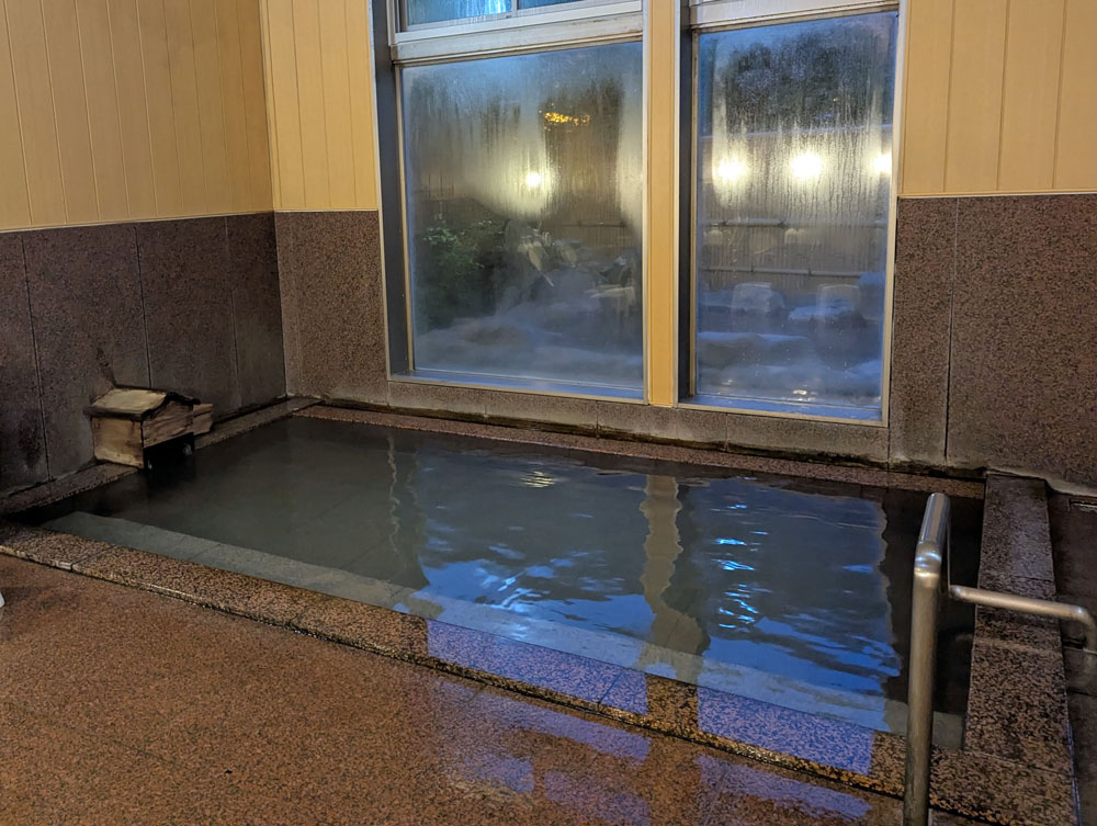 お風呂の洗い場、脱衣所なんかは比較的きれいでよかったのですが、お風呂のタイルはヌルヌル、タイル目には黒い物体が付着、またそれららしきモノが浮遊していて驚きました。温泉なら湯の花かな?と思いますが、大浴場は温泉ではなく沸かし湯なので…(;^ω^)