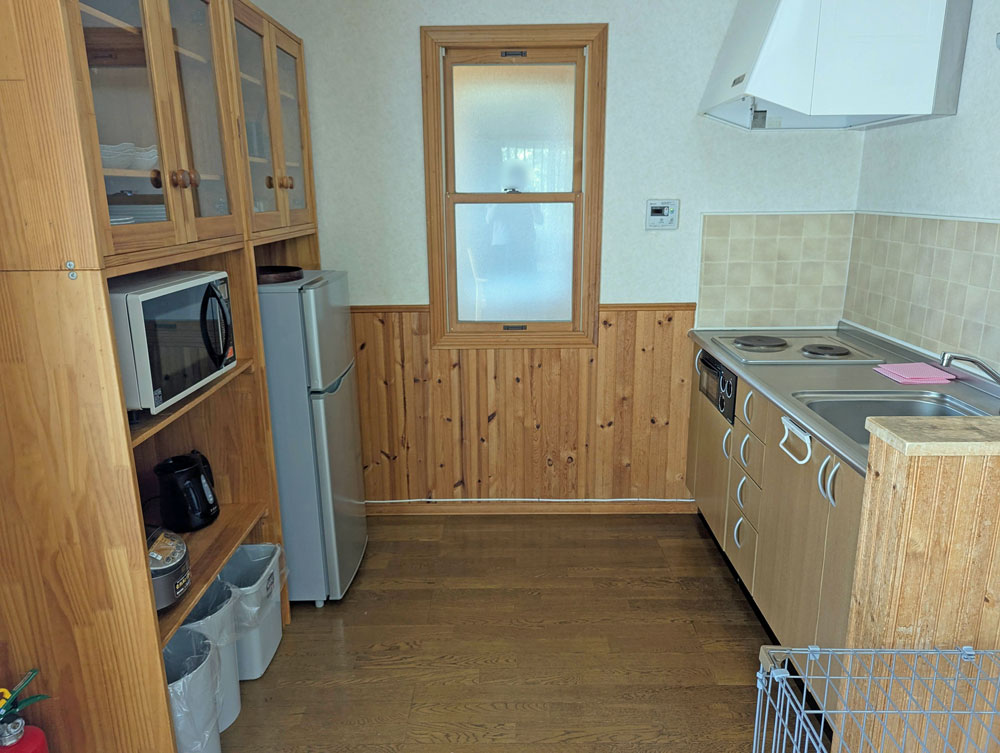 ご飯はキッチンで焼き肉をしました。ガスコンロではなく電熱式だったので、温度調整がちょっと難しかったです。それと持参したお米を炊きました