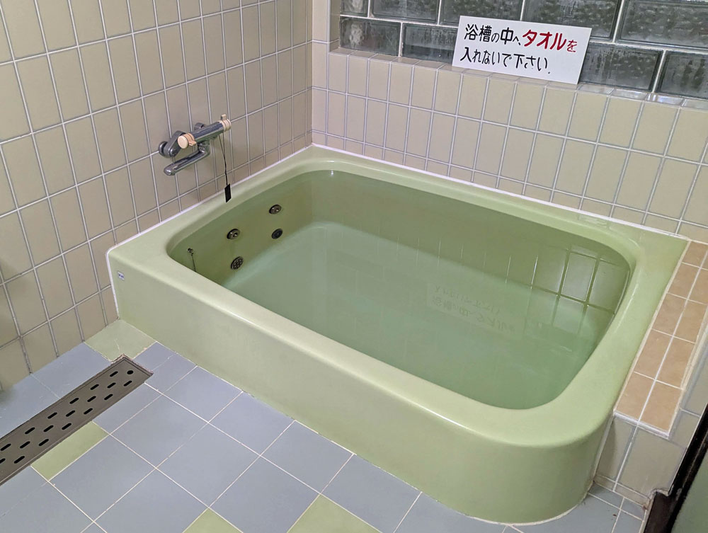 お風呂は一般的な家庭のお風呂のようでした。男女には別れておらず、空いていれば自由に利用できます。源泉かけ流しで滞在中入り放題。やわらかいやさしいお湯で最高でした。露天風呂はありませんが、近くの薬師の湯を割引で利用できるそうです。