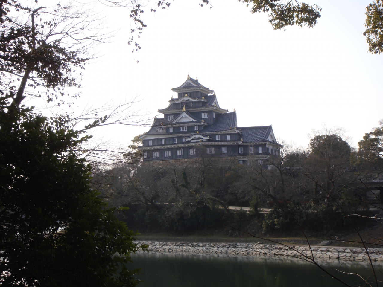 当時、旭川河口部は複数の派川に分岐しており、その中の大洲原と呼ばれる広大なデルタ地帯中央に「岡山」(柴岡山とも)、その西隣に「石山」、さらにその北西には「天神山」(天満山とも)の3つの丘が連なり、各時代ごとに要害として使用されたとされる。その中の石山にあった石山城(いしやまじょう)に宇喜多直家が入城・改築し、後に子の宇喜多秀家が隣接する岡山に新たに本丸を設け、石山城を取り込む形で城郭が建造された。これが岡山城である。- 旅行時期