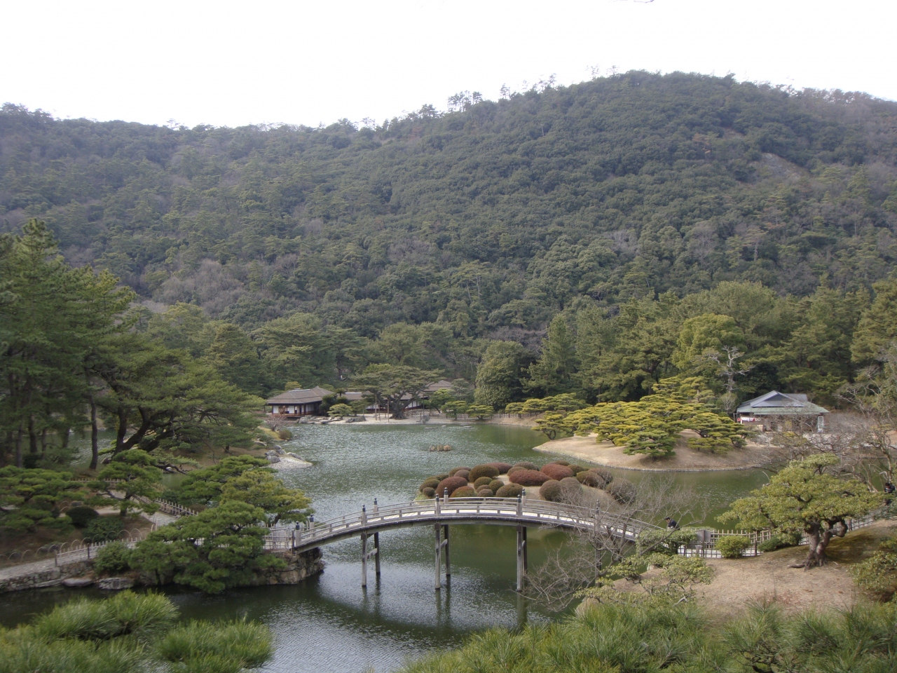 1625年頃、讃岐領主生駒高俊によって、南湖一帯が造営され、1642年入封した松平頼重に引き継がれ以後松平氏5代約100年をかけて完成した。明治新政府の管理下におかれた後、1875年に県立公園になり一般に公開された。1953年には特別名勝に指定された。- 旅行時期