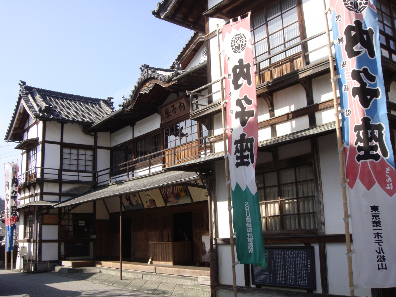明治末から大正にかけて内子の町が木蝋や生糸などの生産で栄えていた頃、地元の人々の娯楽の場として発案され、大正天皇の即位を祝して地元有志の出資により創建された。農閑期に歌舞伎や文楽、後に映画や落語なども演じられた。その後昭和40年代にはホール的に活用されていたが、老朽化により取り壊されようとしていた。しかしながら、町並み保存地区に近接していることもあり、まちづくりの核として活用していくべきとの町民からの要望により復原され、今日に至っている。今日では、歌舞伎のほか、各種講演やまちづくりの会合等に活用されている。