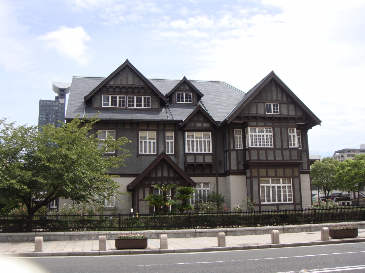 旧門司三井倶楽部は大正十年に三井物産の社交倶楽部として、門司区谷町に作られました。建物はハーフティンバー様式(木骨様式)と呼ばれるヨーロッパ伝統の木造建築工法で作られたもので、木造の骨組みの間を漆喰やレンガ、石などを使って埋めて壁が作られ、木造の骨組みがそのまま外観デザインのアクセントとなっています。内装には各部屋にマントルピース(暖炉)が配置されドア枠、窓枠、大階段の親柱などには幾何学模様のアールデコ調の飾りがされており、大正モダンを深くうかがうことができます。当時、門司港がどれほどの経済力を誇っていたのかも容易に想像できます。また、アインシュタイン博士が全国を講演をする為に来日した際に、ここ三井倶楽部に宿泊しています。アインシュタイン博士は大変、門司港と三井倶楽部を気に入ったようで、福岡に宿泊した際も門司港の事ばかりしゃべられていたそうです。アインシュタイン博士が宿泊した部屋は今も当時のまま残されています。現在の旧門司三井倶楽部は、一階がレストランやイベントホール、二階にはアインシュタインメモリアルルーム、門司出身の女流作家林芙美子の資料室があります。この建物もJR門司港駅と同じく国の重要文化財に指定されています。