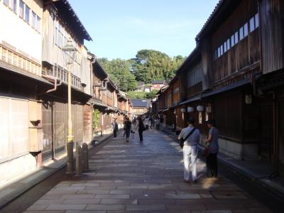 東茶屋街は金沢百万石の城下町の風情を現在最もとどめている街の1つです。金沢市には三箇所の茶屋街があり東茶屋街の他ににし茶屋街、主計町茶屋街があります。それぞれが当時の景観をとどめていて修景計画も着々と進んでいます。東茶屋街はそのうちでも最大規模を誇り、現在でも8件が営業していて、芸子さんや芸者さんが20名ほどいるそうです。町の中には笛や太古、三味線などの音が流れ、昔からの景観とあわせてなんとも言えない雰囲気があります。金沢の町割りが進む中、文政3年(1820)に茶屋と呼ばれる遊郭を整備したのが始まりで「東廓」などと呼ばれ歓楽街として栄え、時には文化人達の社交場にもなりました。茶屋様式と言われる建物が軒を連ね特に「志摩」や「懐華樓」などは江戸時代当時をよく伝えており文化財にも指定されています。二番丁では大方の建物の修景が終わり石畳や電柱の地中化、街路等のデザイン化なども随時行われています。路地に入ってもその風情が連続していて、数年前に訪れたときと比べても比較にならないほど整備されています。重要伝統的建造物群保存地区に指定されている中の3分2が明治初期までに建てられた建物で埋め尽くされています。