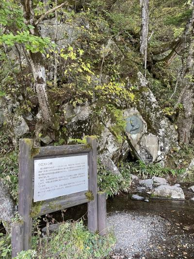 何なのかよくわかってないけれども.上高地で90分間過ごすのに目印にしました。目印にしたんだけども、すごくわかりにくくて、特別行きたかったわけでもないので、途中諦めるんだけど、同行者がせっかくだからとなんとか探してたどり着きました。わかりにくいです。