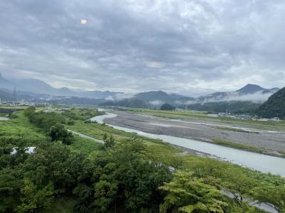 お部屋からは姫川がよく見えて、天気が良ければ山々も良く見えただろうと思いとても残念でした。