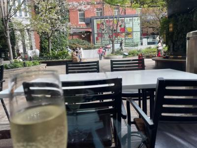 三菱一号館美術館に行く前にランチを食べようと近くのお店に。混雑していて30分くらい待ちました。テラス席でピザとパスタとワインでゆっくりと終わりかけの桜を見ながら楽しめました。やはり待ってもテラス席は気分が違いますね。
