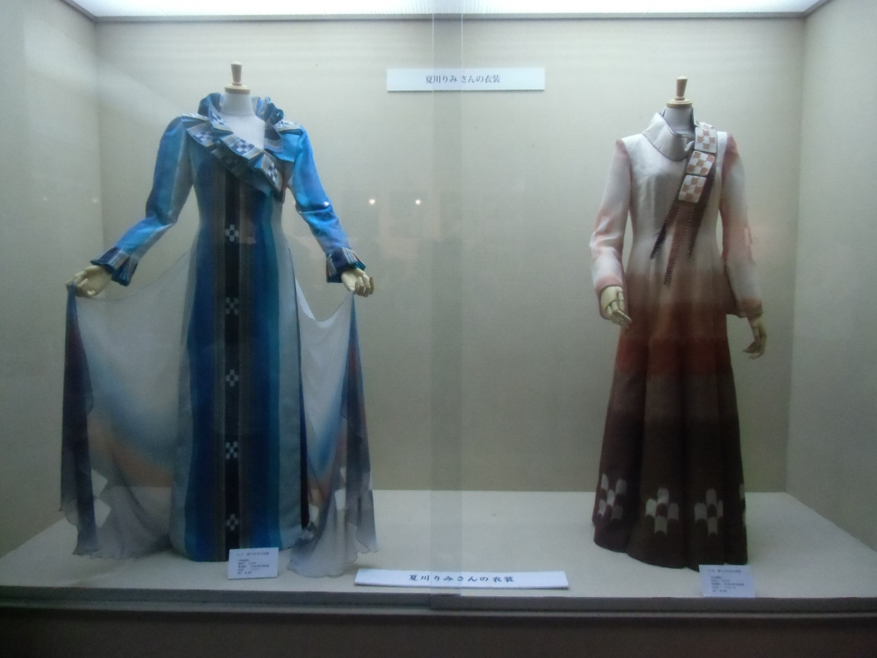 みんさー織の5つの□と4つの□の意味「いつの世までも、足しげく私の元に通ってください」という通い婚時代の女性の願いが込められていることを知りました。ん~ 「ザ・日本」の歴史を感じた次第です。資料展示室にあった、夏川りみさんのNHK紅白歌合戦出場時の衣装は、目を引くものでした。夏川りみさんのお母様がみんさー織の技術者だったそうです。次回は、洋装ではなく、和装でみんさー織の衣装を披露してほしいなと思います。