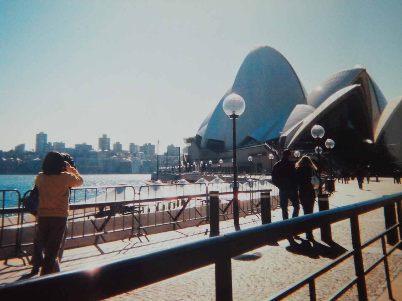 独特な形の白い屋根と、周囲の海の青が映えて、遠目から見ても美しい。