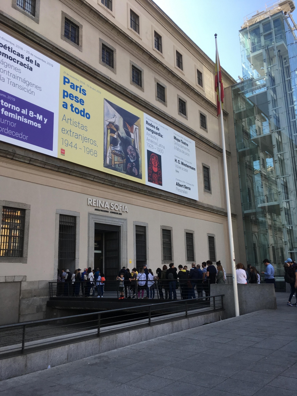 日曜日の16時頃に行きました。入館無料の時間で15分くらい並んで館内へ。近代アートを扱うこの美術館の目玉はなんと言ってもピカソの「ゲルニカ」です。ここだけ係員が絵の両端に立ち、絵に近づきすぎるとブザーがなるセンサー付き。写真撮影も禁止。セキュリティが厳しくなっていました。
