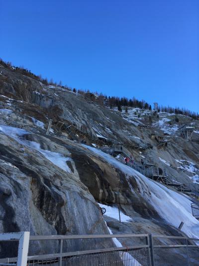モンタンヴェール駅からロープウェイで下って、さらに長い階段を下りると氷河内部に到着します。
