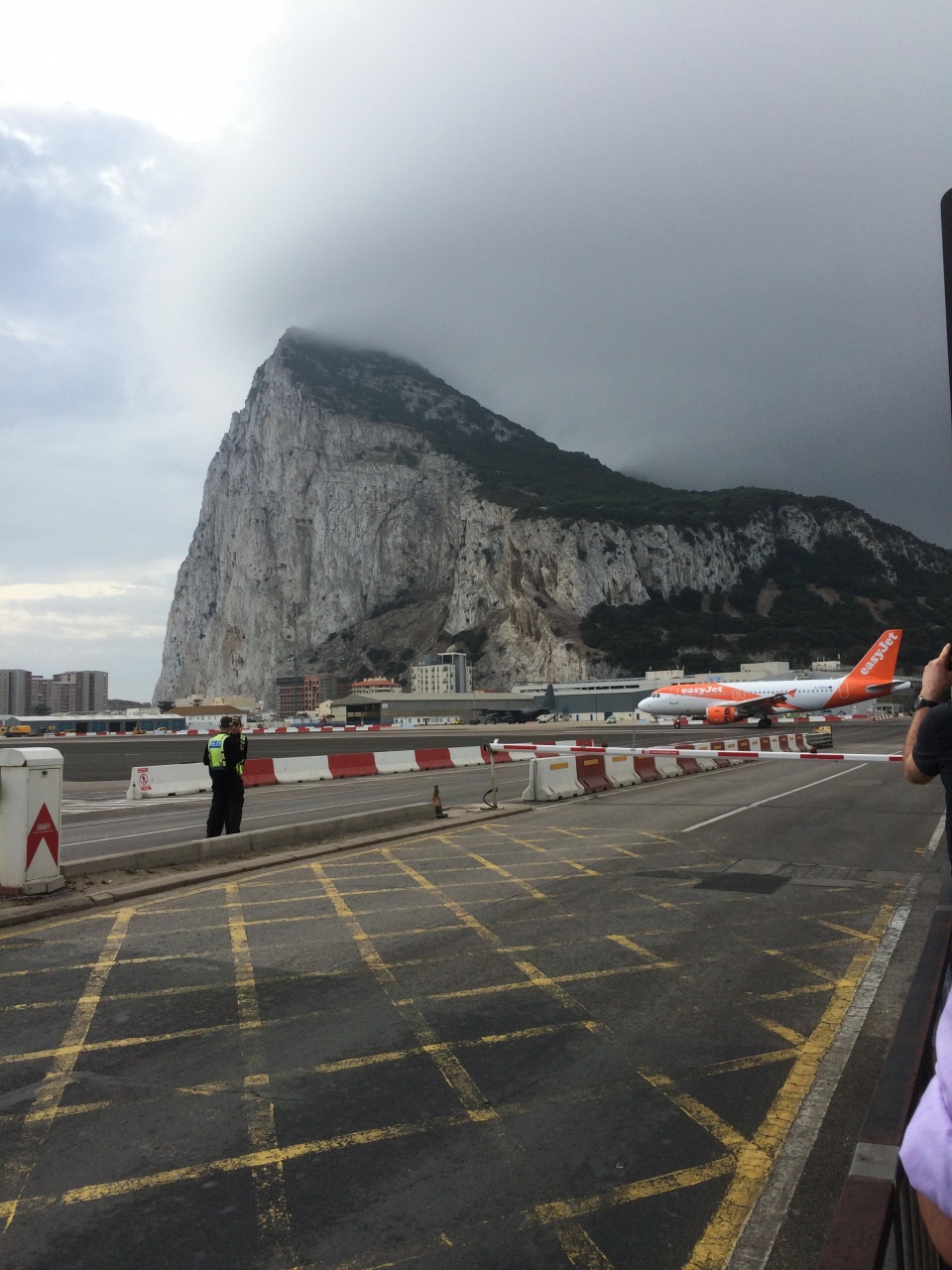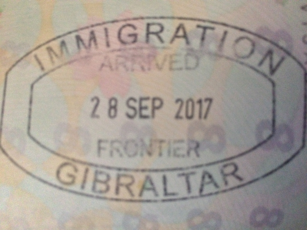 徒歩で入国しました。スペイン側の出国審査はパスポートの写真面をかざすだけで通過できました。次にジブラルタル側の審査。パスポートを見せてOKとすぐにパスポートを返されてしまったので「スタンプ?」と尋ねると押してもらえました。