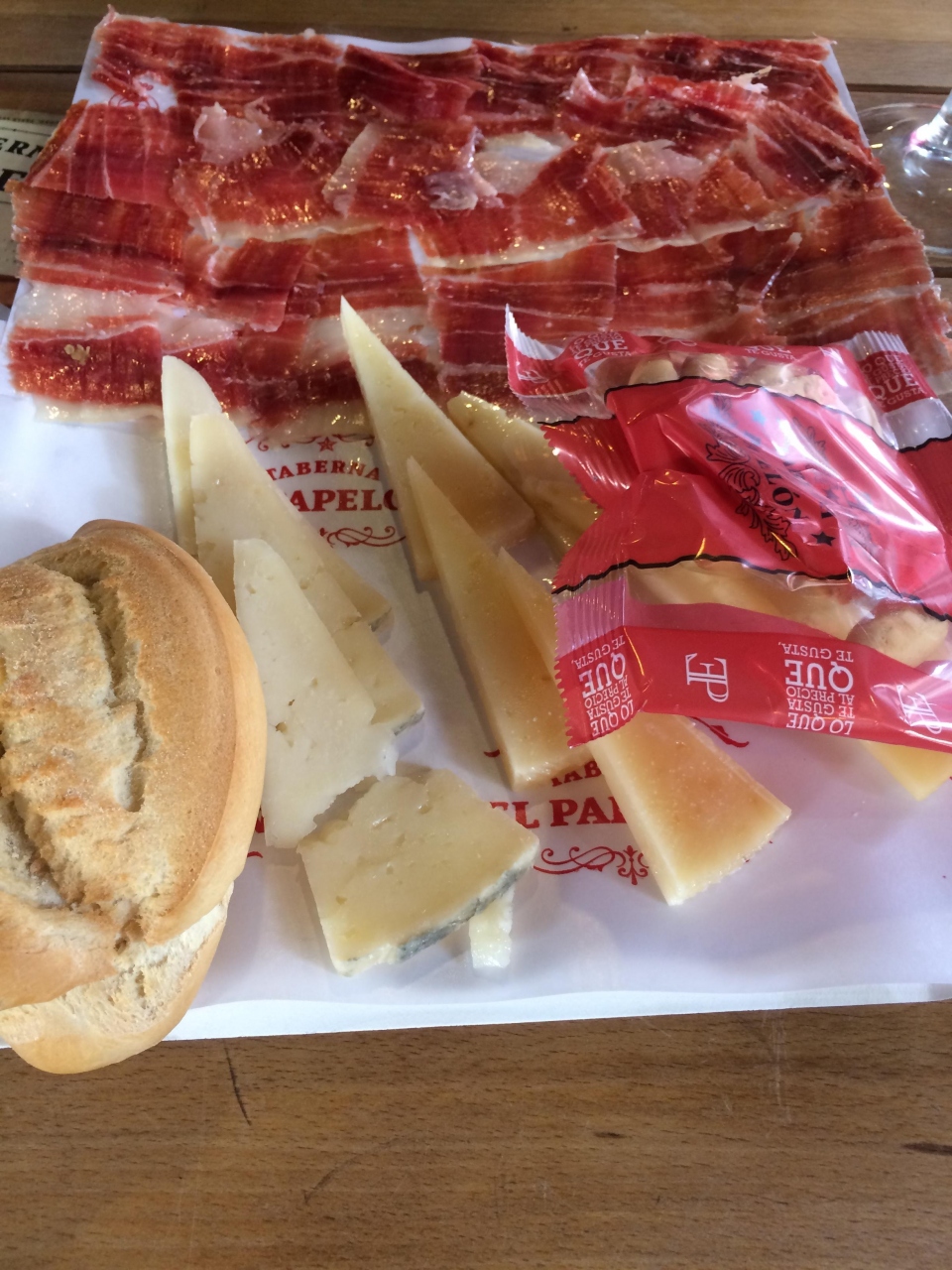 ワイン立ち飲みのお店。カウンターの後ろにワインの樽がおいてあって注文すると小さいグラスにワインを入れて提供してくれます。勘定はチョークでテーブルに書くというスタイル。私はモスカテルというワインをいただきましたがとても甘かった。