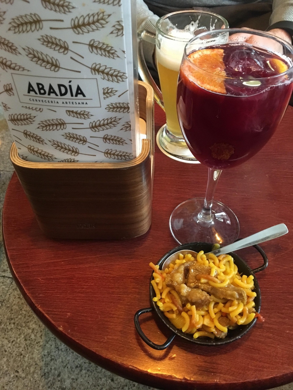 100Montaditosという小さなサンドイッチが食べられるお店は自分でオーダーシートを書くスタイルでしたがメニュー数が多く読むだけで時間がかかりめんどくさいのでバーガーキングにしようと思ったら徒歩15分かかるとのことで近くのステーキ、ハンバーガーのお店にしましたが値段が高い上にハンバーグが生焼けと今回の旅行で最悪な食事となってしまいました。ビールはお手頃価格なんですがね。- 旅行時期