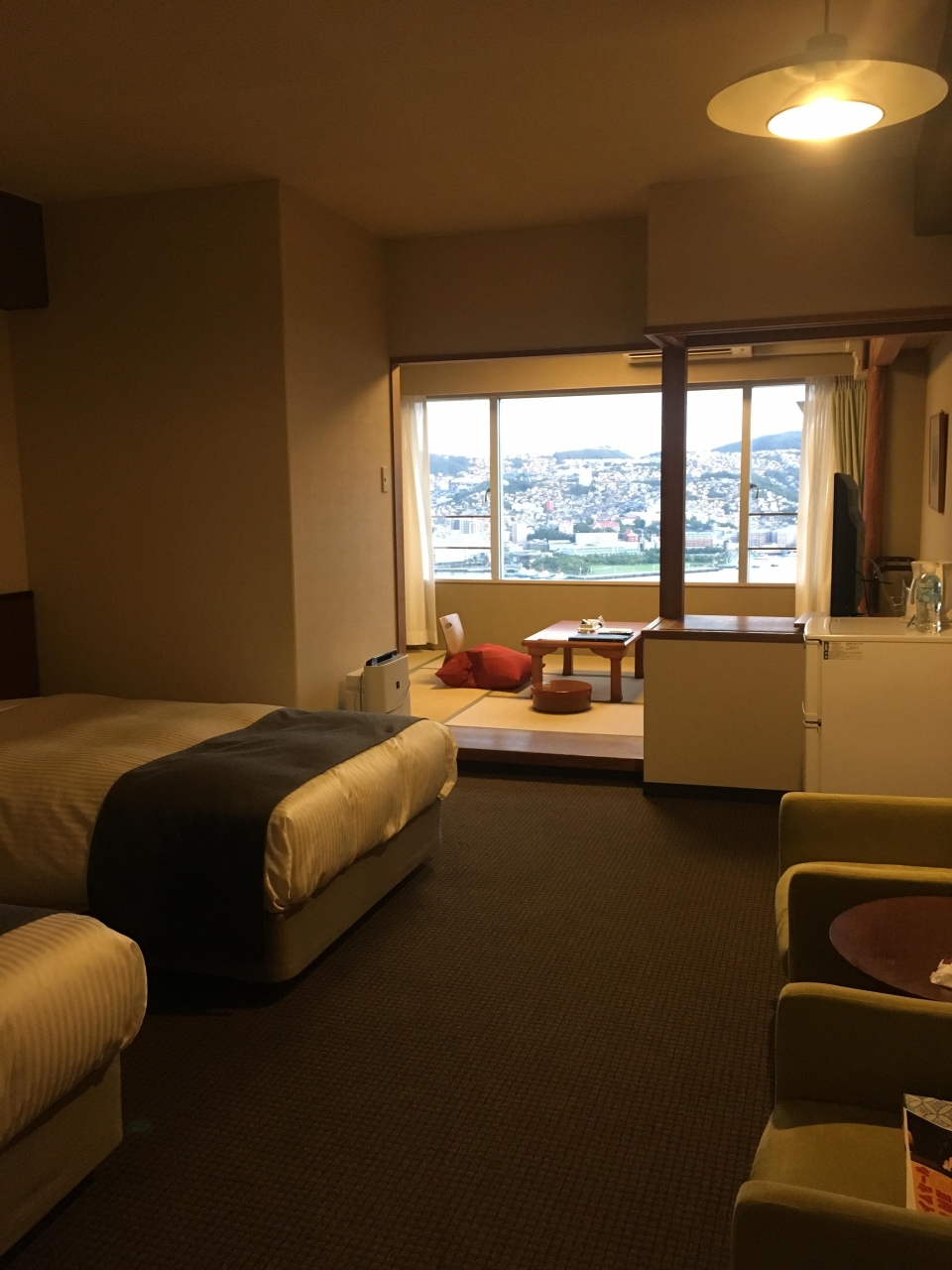 ホテル予約サイトで割引を使って1泊1万円、さすがに朝食で3000円以上は出せなかったけど高層階の眺望だけ部屋から楽しむなら1万円はお得でした。- 旅行時期