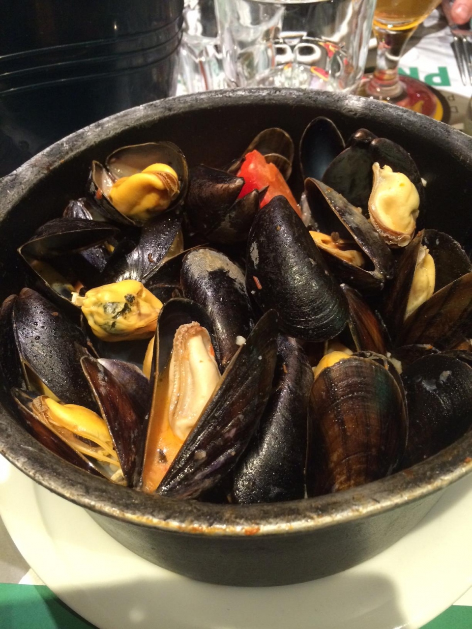18ユーロくらいで鍋いっぱいのムール貝とフライドポテトがついてきます。