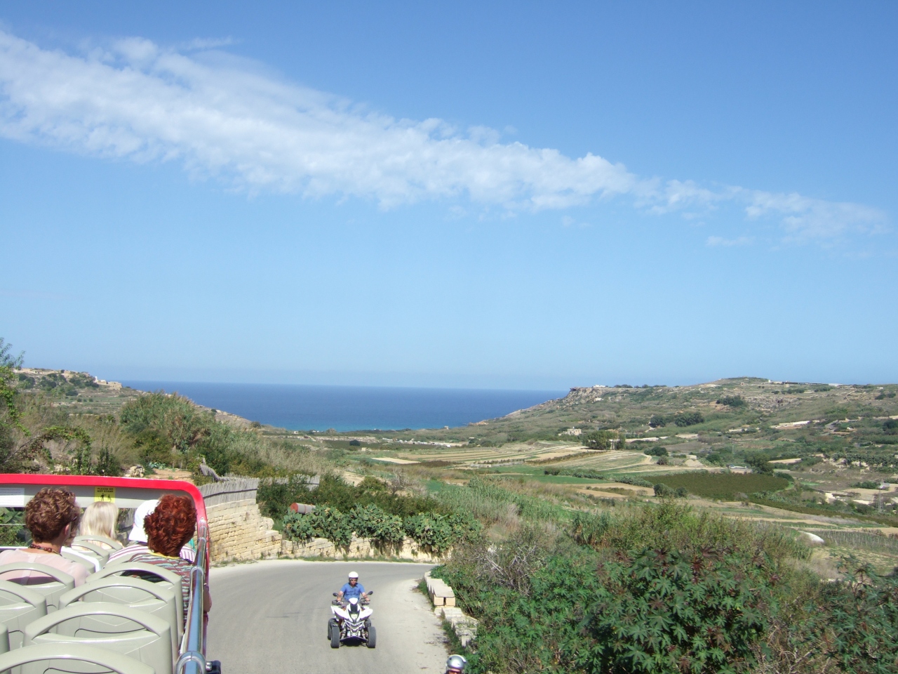 住宅街の狭い道路をバスは通って行きます。ベランダが近く住人が手を振ってくれたりして面白いです。オーディオで日本語も聞けるのでゴゾの歴史などわかってよかったです。- 旅行時期