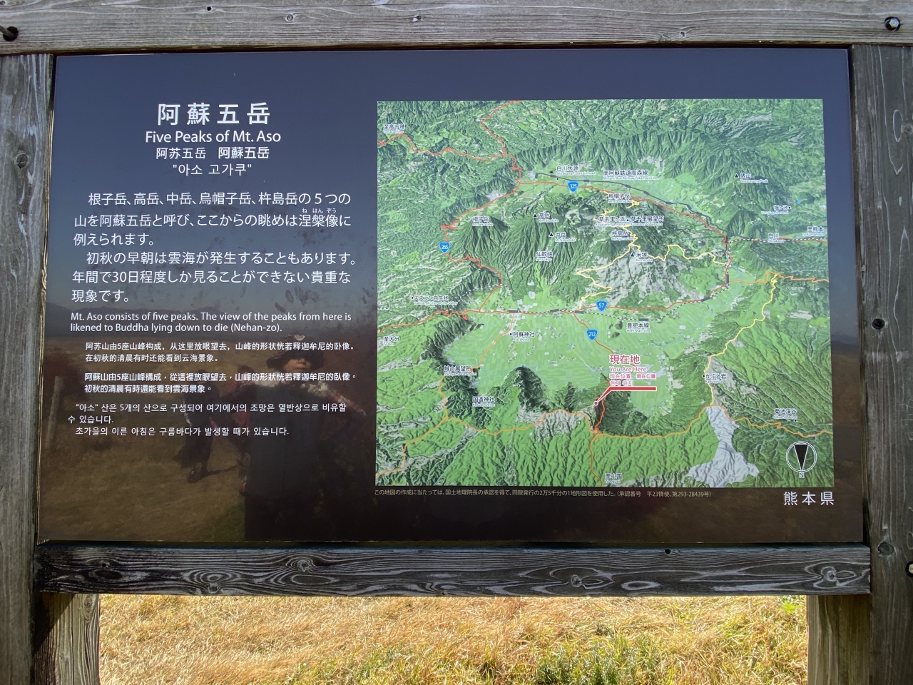 阿蘇ミルクロードの途中にあります。大観峰から菊池渓谷に行く際に立ち寄りました。阿蘇五山だけの眺めならコチラの方が少し近い気がしましたが、トイレも売店も何もないですし、360度の展望は大観峰の方が良いです。時間がなくてどちらかだけ行くのなら、大観峰の方が良いと思いました。