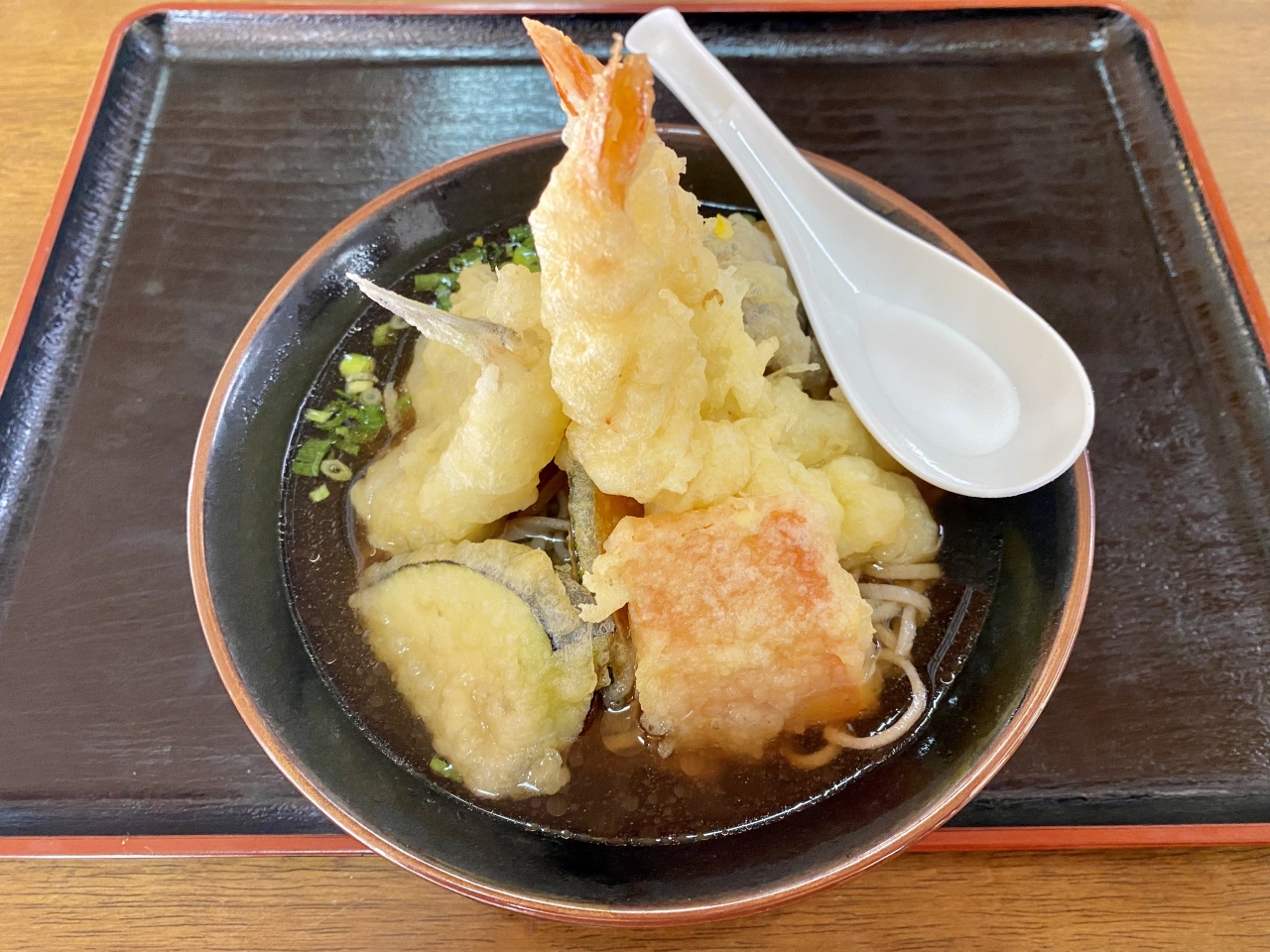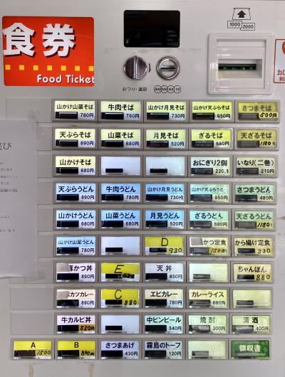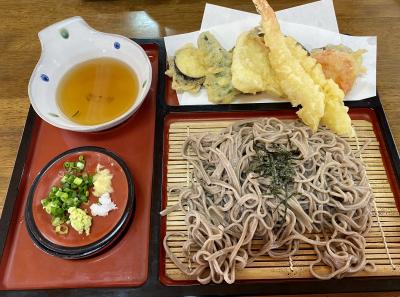 中に入って券売機で食券を買っておばさんに渡します。外のメニューにあったかき揚げ蕎麦を食べようと思いましたが、券売機にはなかったので、家内は天ぷらそば、私は天ざるにしました。二つとも天ぷらは全く同じでしたが、ざるの方が290円も高いのは差があり過ぎのような。天ぷらは美味しかったですが、蕎麦はいまいちでした。唐揚げ定食とかボリュウムがあってコスパの高いメニューが人気のようでした。