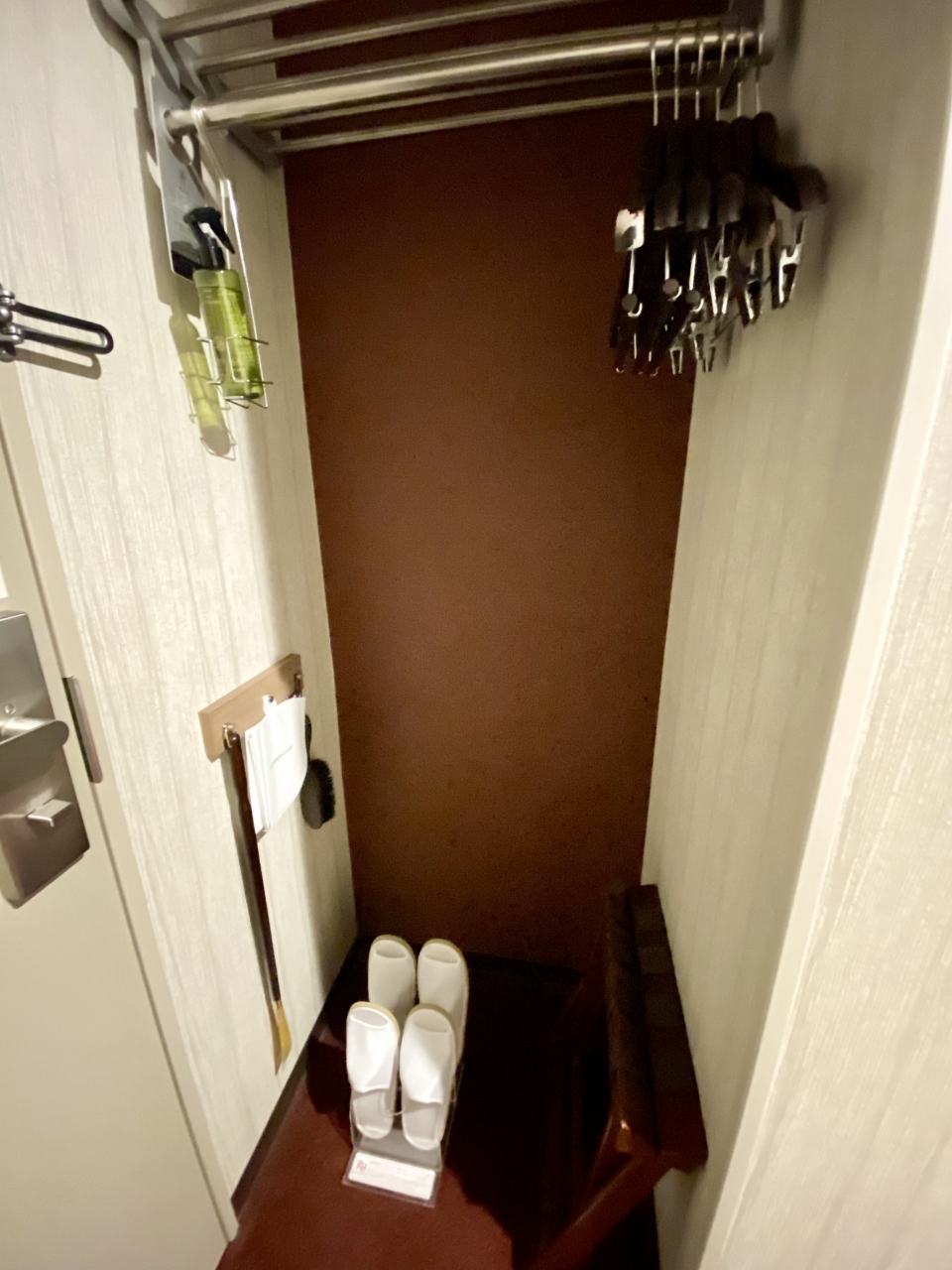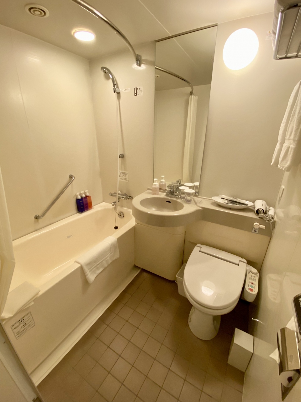 コンパクトツインルームはそれほど広くはなかったですが、料金からすれば問題なし。喫煙室でしたが窓も開き、空気清浄機もありましたので、匂いもあまり気になりませんでした。トイレ、バスルームはまずまずの広さ。クローゼットは扉なしなので、衣類はバスルームにかけていました。