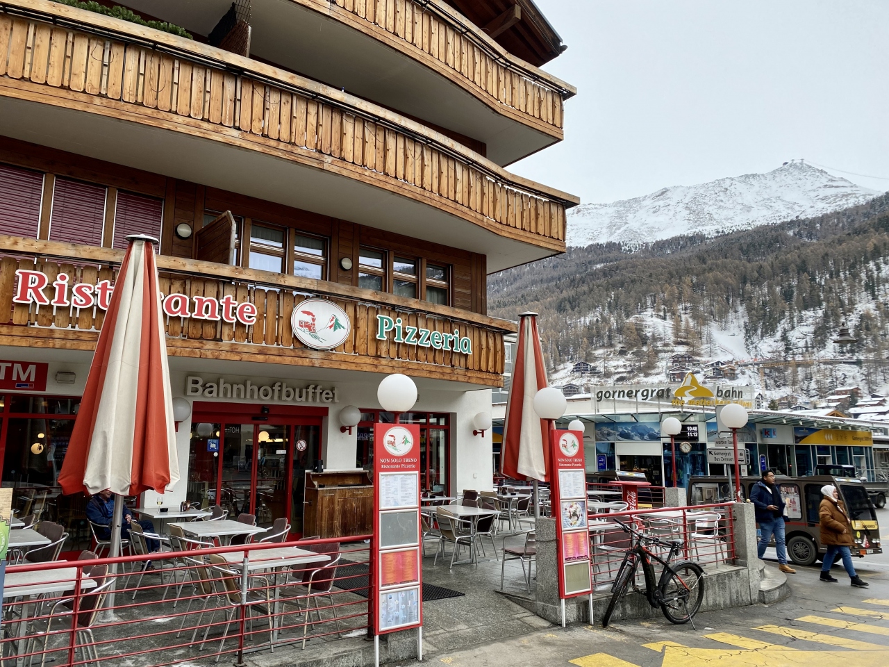2020年2月にスキーに来た際に2回夕食で利用しましたが、今回も1度行きました。ツェルマットで一番人気のイタリアンレストランなので7時以降は予約が必須です。18時までに行けば予約なしでも空いていれば入れます。ジュゼッペおじさんがとにかく陽気で、いつも歌っています。コロナで心配してたけど、お元気そうで良かったです。