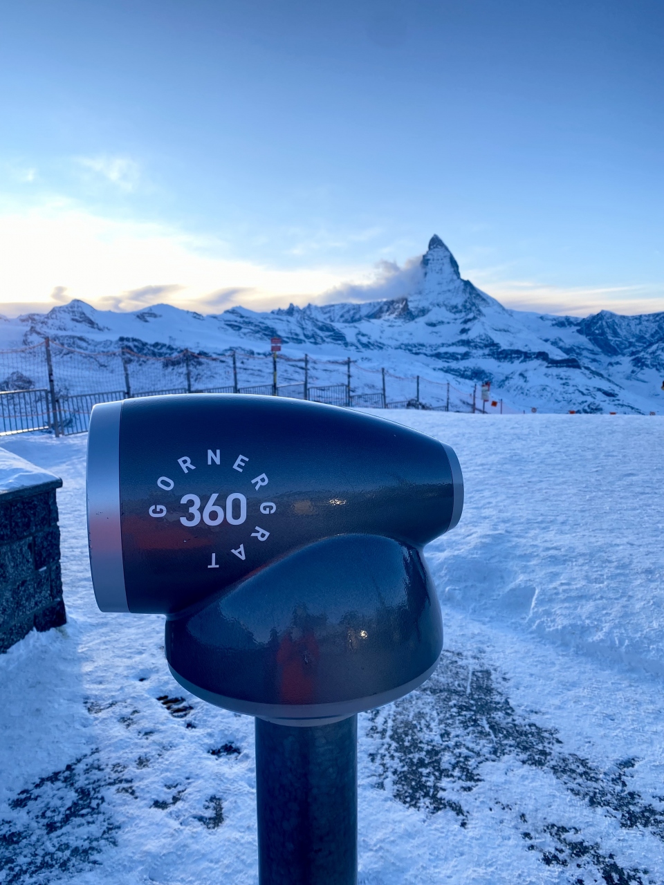 街からのケーブルカー1本なのでアクセスも短時間で済みますし、とにかくマッターホルンの姿が一番美しく見えるロケーションが素晴らしい。ここでビールを飲むために、何度も来ていると言っても過言ではありません。
