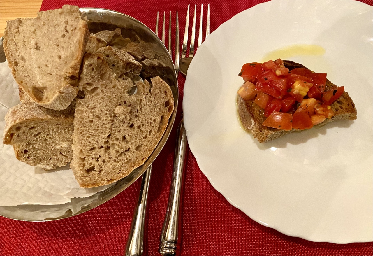 まずはお通し的な感じでブルスケッタが、サービスで出るのがこのお店の特徴。プロセッコもくれる時がありましたけど、今回はありませんでした。