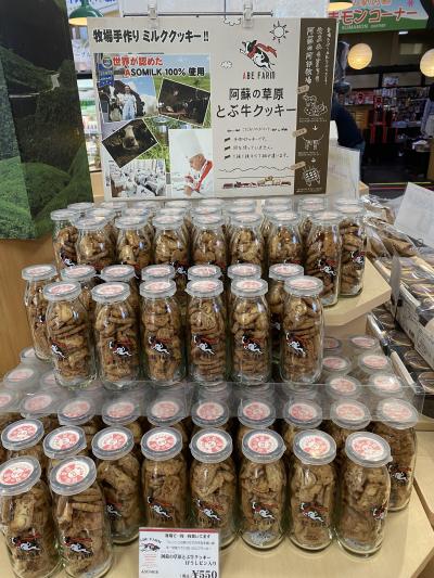 いつ来ても車やバイクが多くて賑わっています。駐車場からお店に入る時は車に注意しましょう。地元産野菜なども豊富で、お土産は熊本らしい特産品もあり、お菓子などは色々と買ってしまいます。阿蘇ミルク100%使用の「阿蘇の草原とぶ牛クッキー」は素朴な味わいでした。