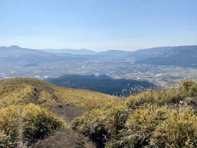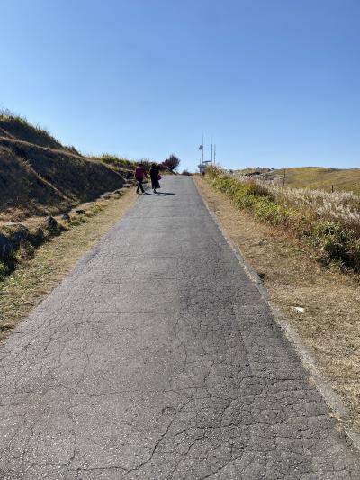 平日でしたがお天気が良かったので、駐車場は結構な混雑でした。少し下の第三駐車場にとめて歩きました。大観峰頂上の展望所までは5分ほど登りますが、360度広がる眺めの良さなので頑張って上がりましょう。文豪徳富蘇峰が大観峰と名づけたそうで、阿蘇北外輪山の最高峰です。