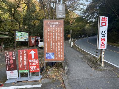 2022.11.9は平日でも駐車場は結構いっぱいで何とか入れました。駐車場から200m歩道を登っていくとビジターセンターがあり、通り沿いの窓口で維持管理協力金200円支払って進みます。