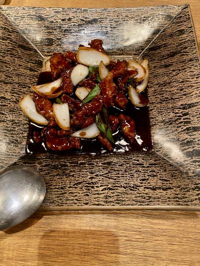 メニューはWebでも見ていましたが結構な種類があるので、そんなに食材キープして大丈夫かな ?と心配になるくらい。一番食べたかったのは酢豚。鹿児島は黒酢が有名なので黒酢仕立てです。肉は豚肩ロース、角煮から選べます。今回は肩ロースにしました。味付けは悪くないけど、酢豚特有のカリカリ感がありませんでした。