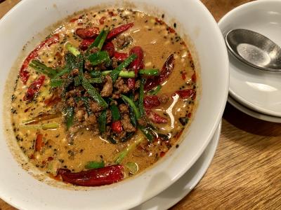 最後に四川坦々麺。こちらも唐辛子を全て避けてから頂きました。こちらも最初は少しコクが足りないかなと感じましたが、食べているうちにゴマの味わいが増してきて美味しかったです。