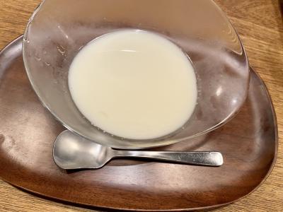 デザートは杏仁豆腐を一つ。食べやすくするためでしょうか ? 杏仁(きょうにん)の薬膳っぽい香りや味わいがほとんどなくて甘いだけに感じました。中華料理後のさっぱり感が欲しいんですけどね。