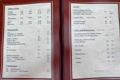 超濃厚なエスプレッソ(4×2CHF)、白ワイン(6×2CHF)、ミネラル(小 : 6)のトータル110CHF=(約16,500円)は料理の繊細さや素材の良さ、味わいからすれば妥当な価格すが、円安のため日本人には厳しいシーズンとなりました。