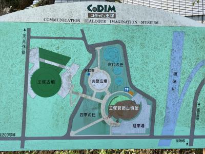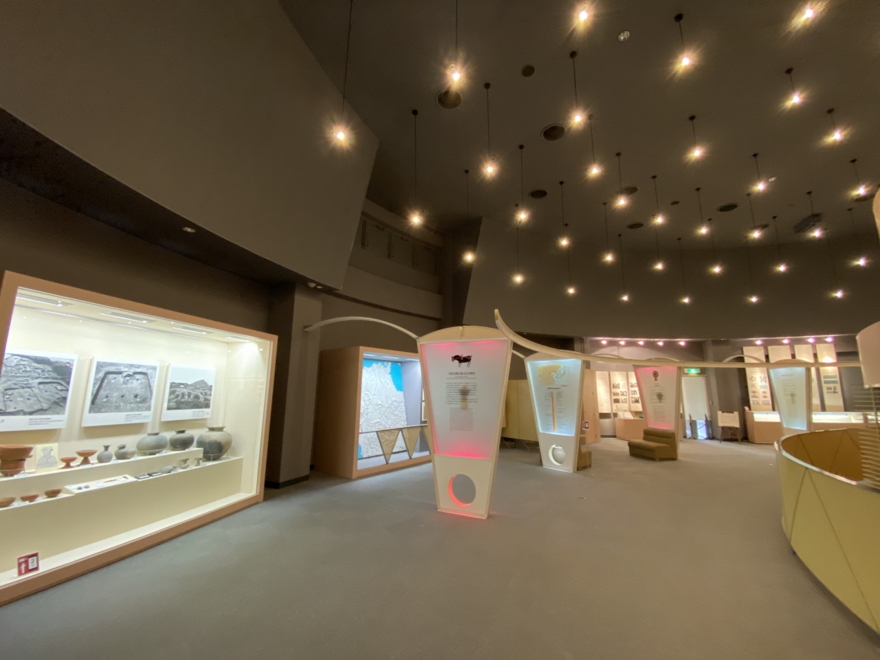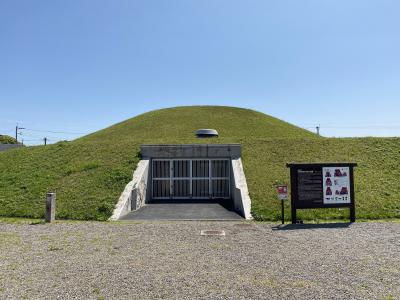展示館の万華鏡トンネル出口から出る際には、正面に古墳が見えます。外に出る前には、無料の企画展示(コノマ遺跡)も見ました。
